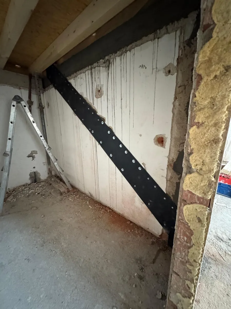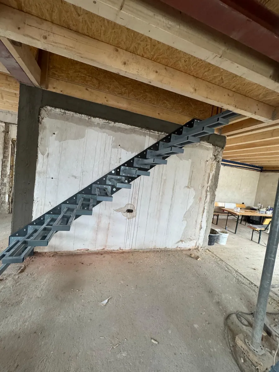 Das Projekt betraf die Modernisierung eines Treppenhauses in einem älteren Gebäude. Die tragende Wand bestand teilweise aus Ziegeln und teilweise aus Stein, was die Möglichkeit der direkten Montage der Kragarmstützen erheblich einschränkte. Es war notwendig, eine Lösung zu entwickeln, die sowohl die Stabilität und Sicherheit der Konstruktion gewährleistet als auch den modernen, leichten visuellen Effekt bewahrt.