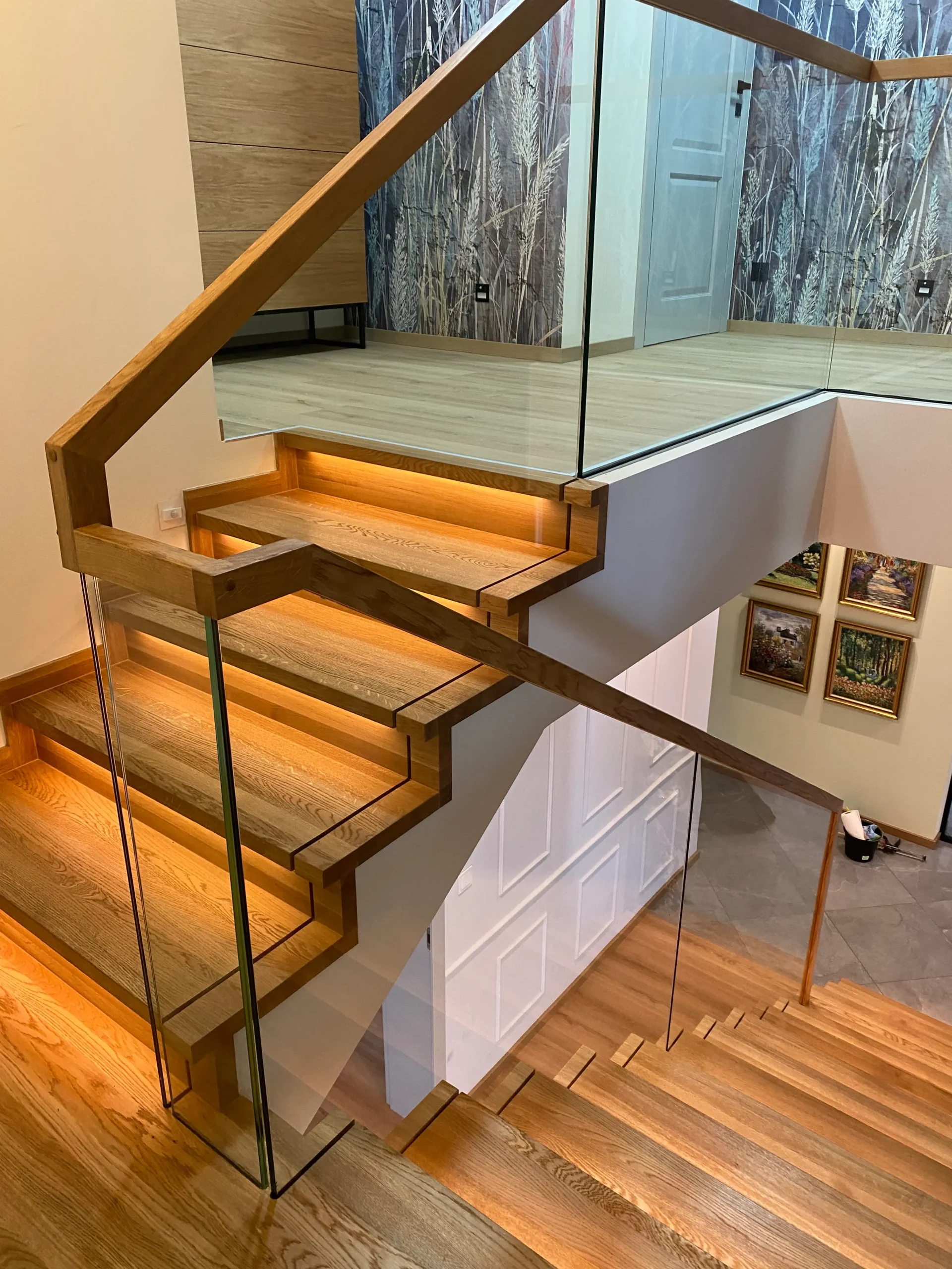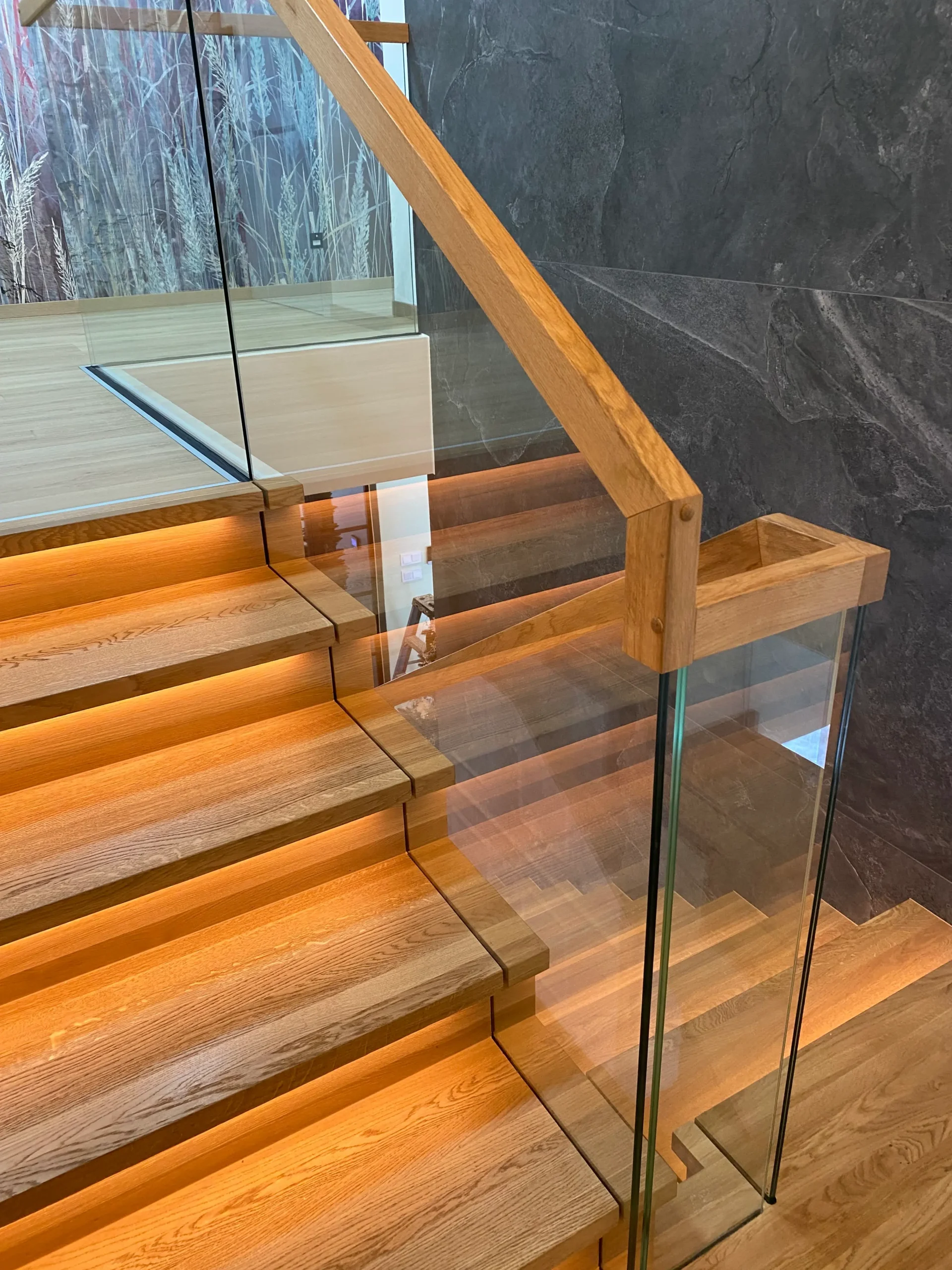 • Holzpaneele für die Treppenverkleidung