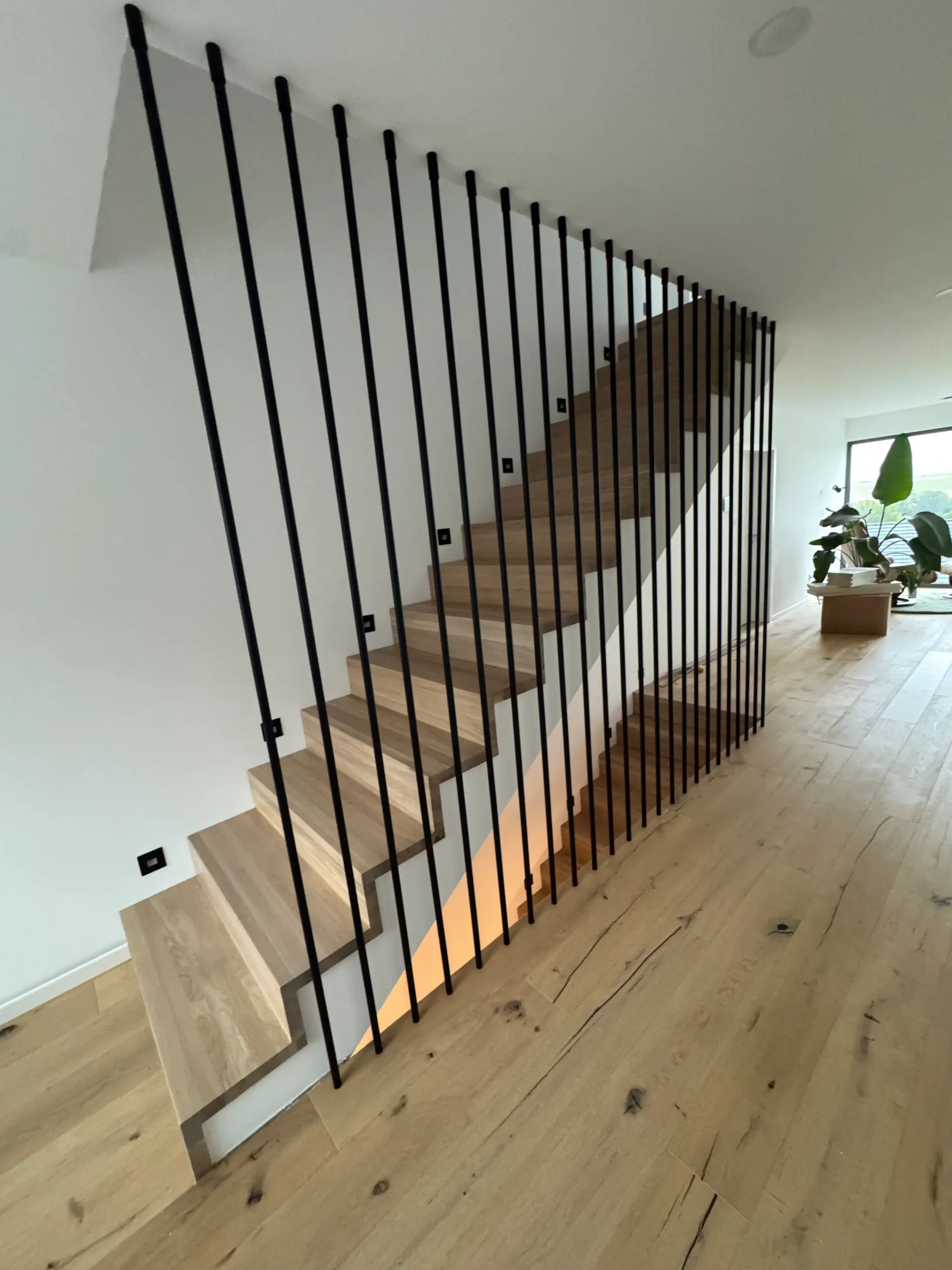 Wenn du alles nach Plan umgesetzt hast, sind die neuen Stufen ein echtes Highlight beim Treppensteigen. Sie sind robust, verleihen mehr Wärme und integrieren sich nahtlos in deinen Wohnraum. So hast du dir eine Treppe geschaffen, die ganz auf deinen Geschmack zugeschnitten ist. Ein passendes Geländer rundet das Bild ab und sorgt für ein Höchstmaß an Sicherheit.