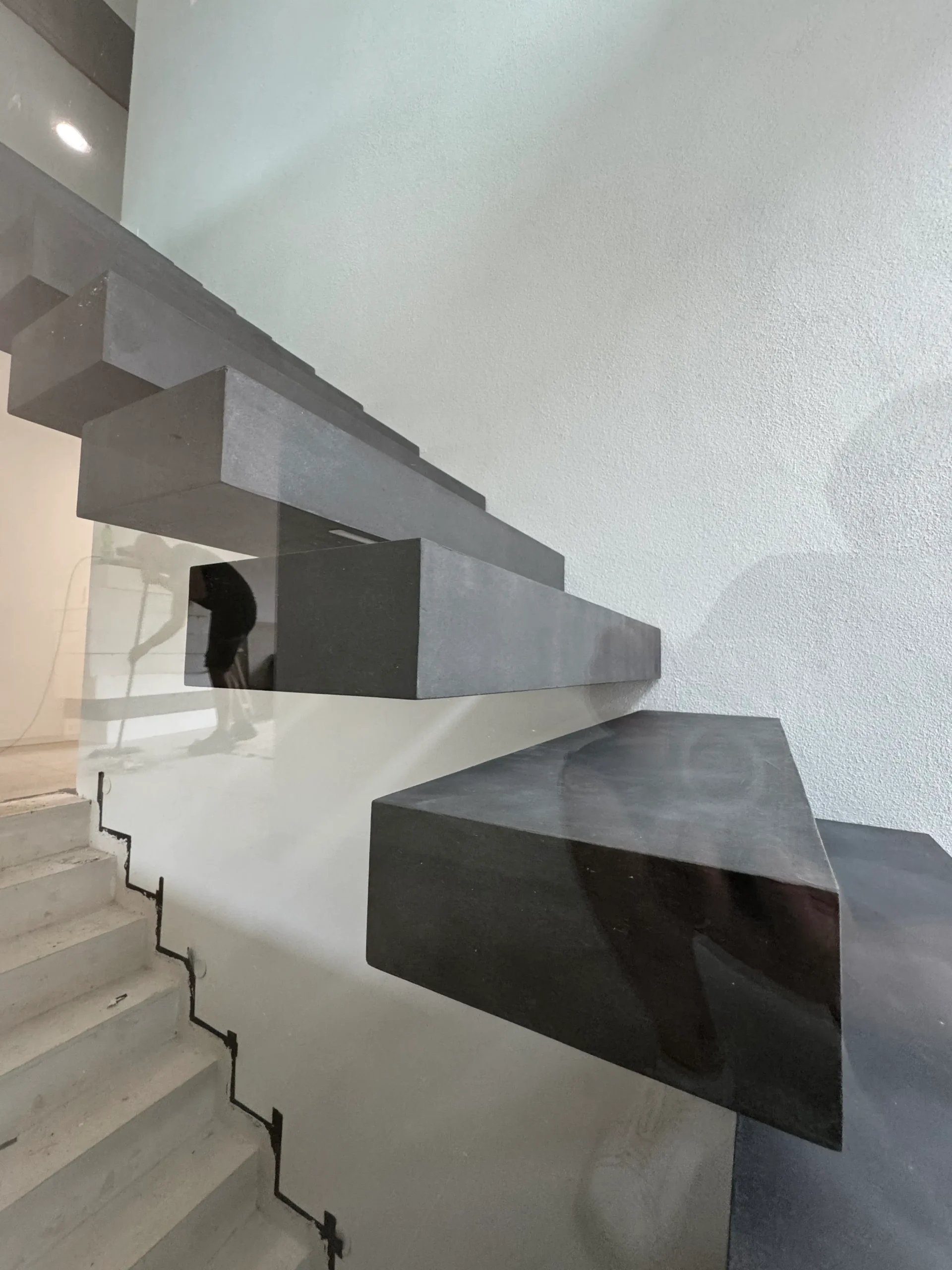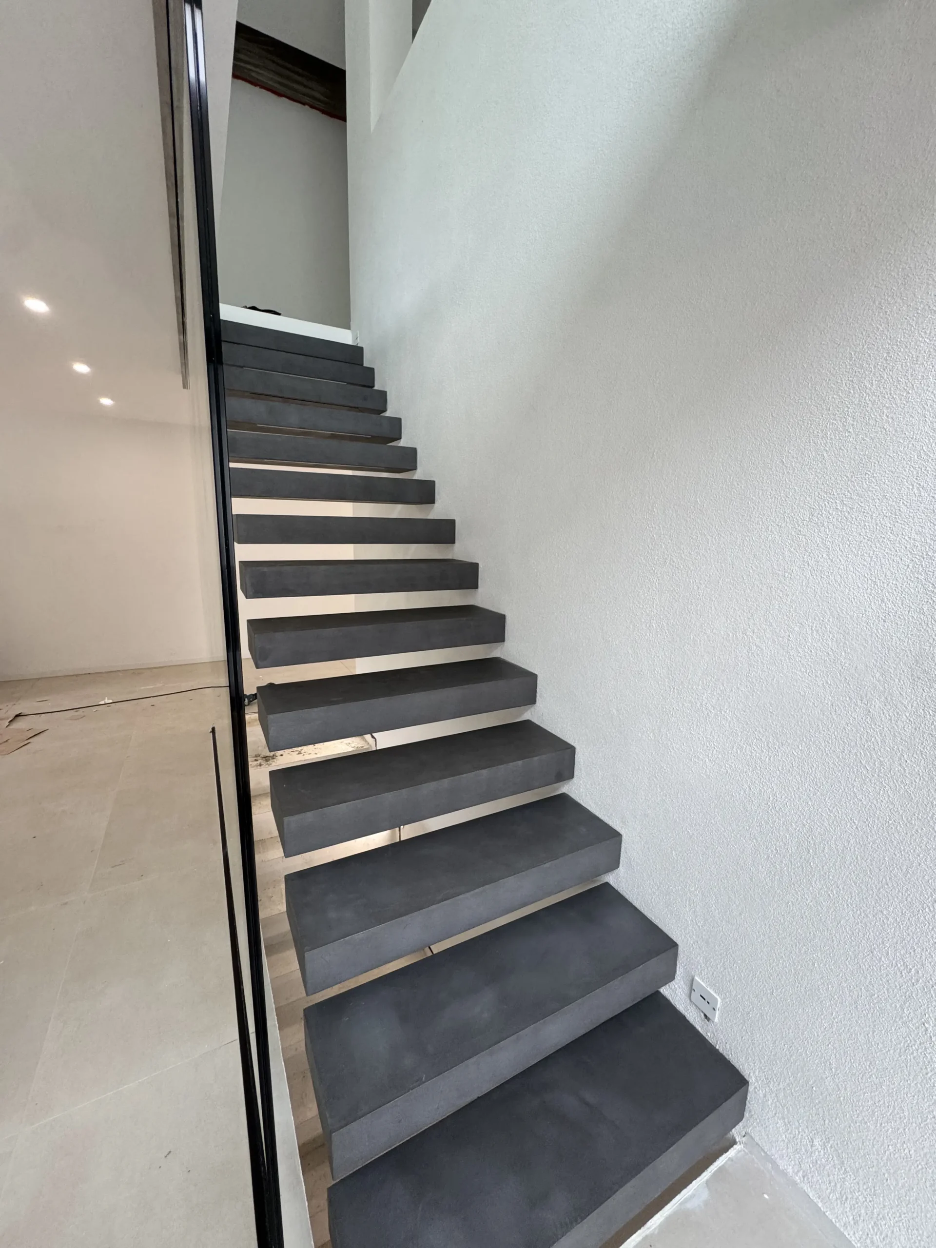 Kragarmtreppe aus Mikrozement – schwebende Treppenstufen in moderner Betonoptik