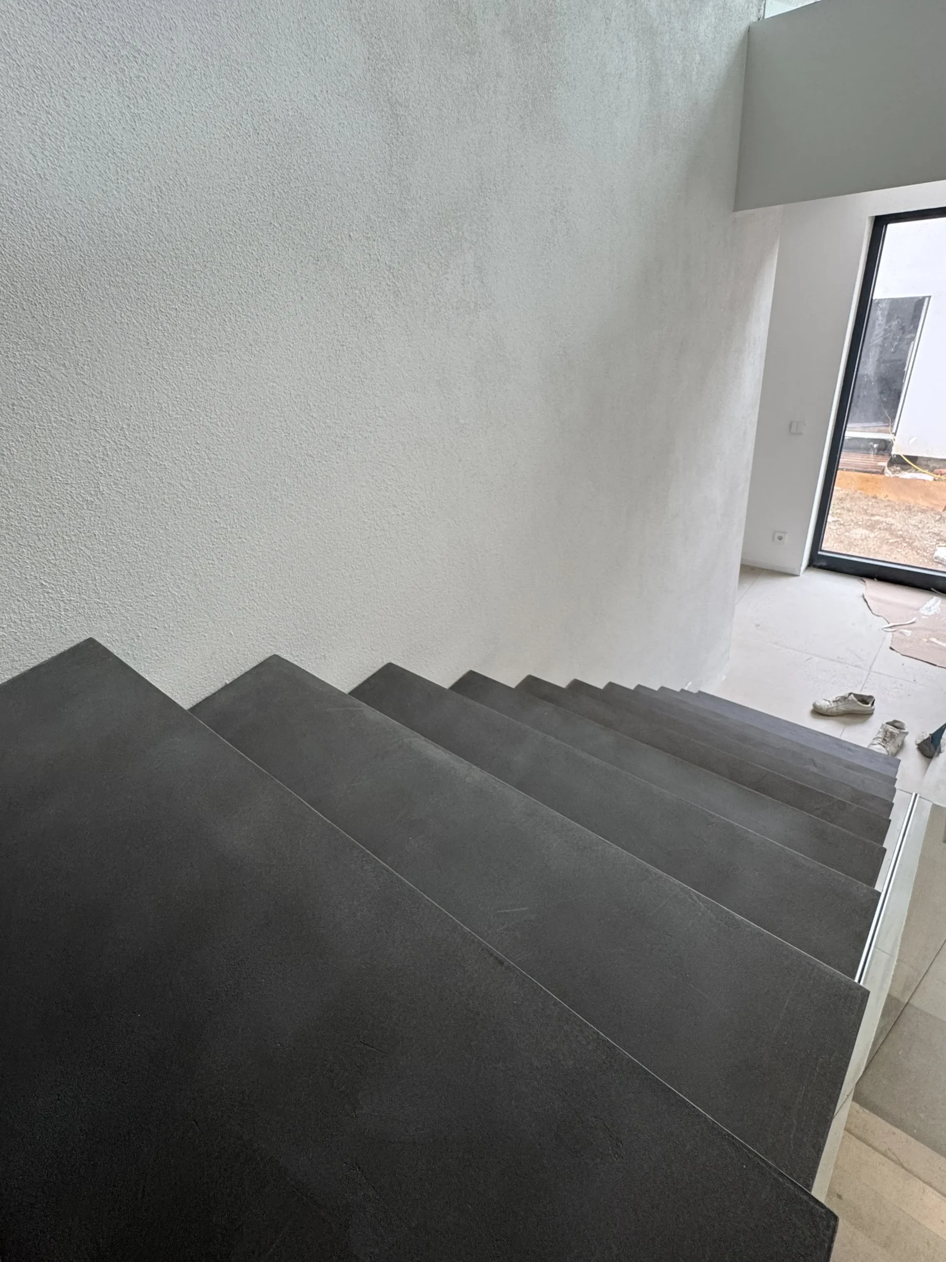 Die schwebenden Stufen aus Mikrozement verleihen jedem Raum eine puristische, minimalistische Note. Die Oberfläche erinnert an Sichtbeton und schafft ein exklusives Loft-Feeling.
